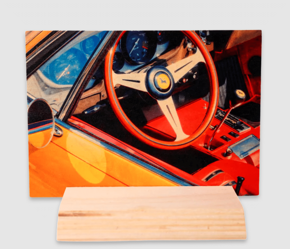 This handcrafted wood print display features unique, detailed images from The Marconi Museum collection. The perfect gift for any car lover or automotive enthusiast. This modern style design allows you to either stand up the artwork, great for any counter or desk surface, or the option to seamlessly hang on your wall with the “cove” back creating a gallery-style drop shadow.Product Details: