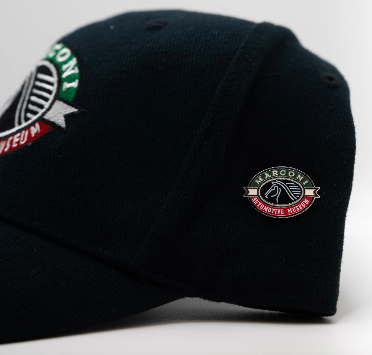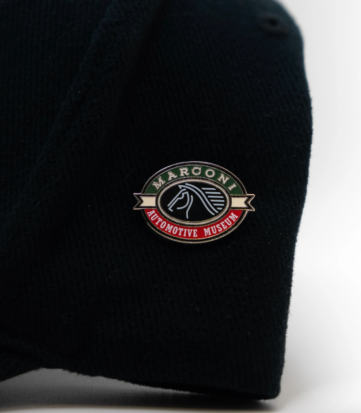 Our Marconi Automotive Museum logo pin is a great addition to any hat, shirt, backpack or wherever you choose to sport our signature logo! Easy to adjust with durable rubber fasteners.