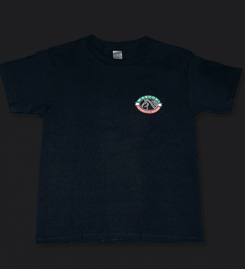 Our classic Marconi Automotive Museum Kid’s Tee is both comfortable and durable for everyday use or to wear to your little one’s next car event! Available in 3 colors (Black, White, and Red), the front and back features our signature Marconi Automotive Museum logo.Product Details:
