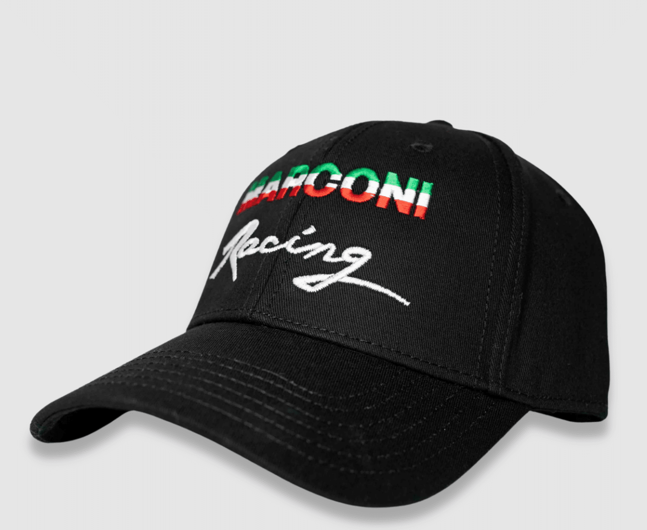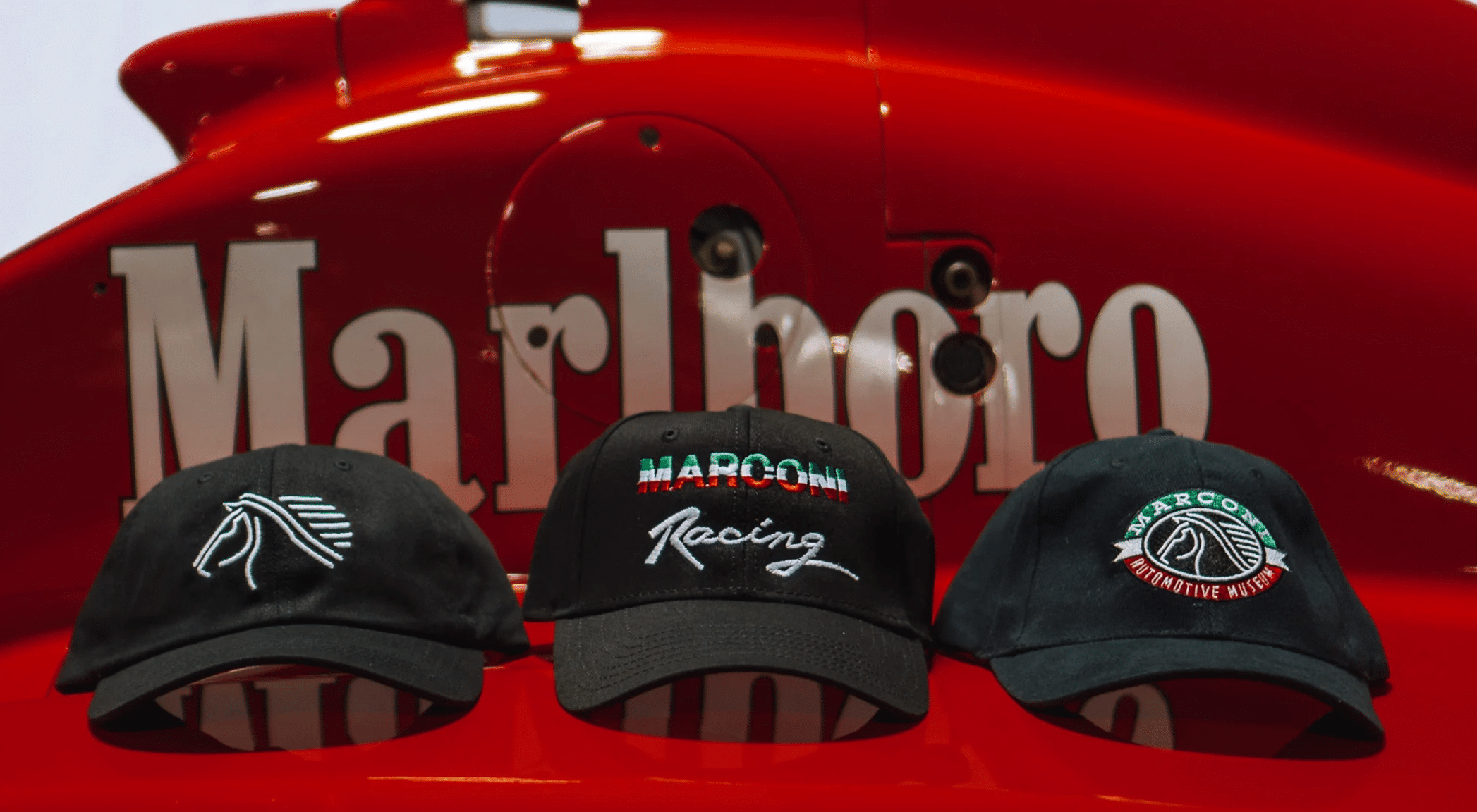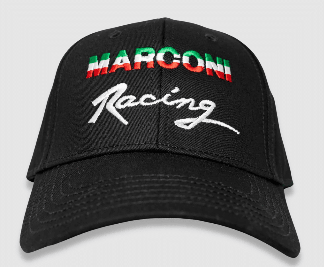 Inspired by the former Marconi Racing team, this hat features the vintage stitched Marconi Racing logo. Designed with comfort and durability in mind with easy to adjust velcro strap for a perfect fit every time. Great for any car enthusiast or souvenir collector looking to represent The Marconi Automotive Museum in Style!Product Details:
