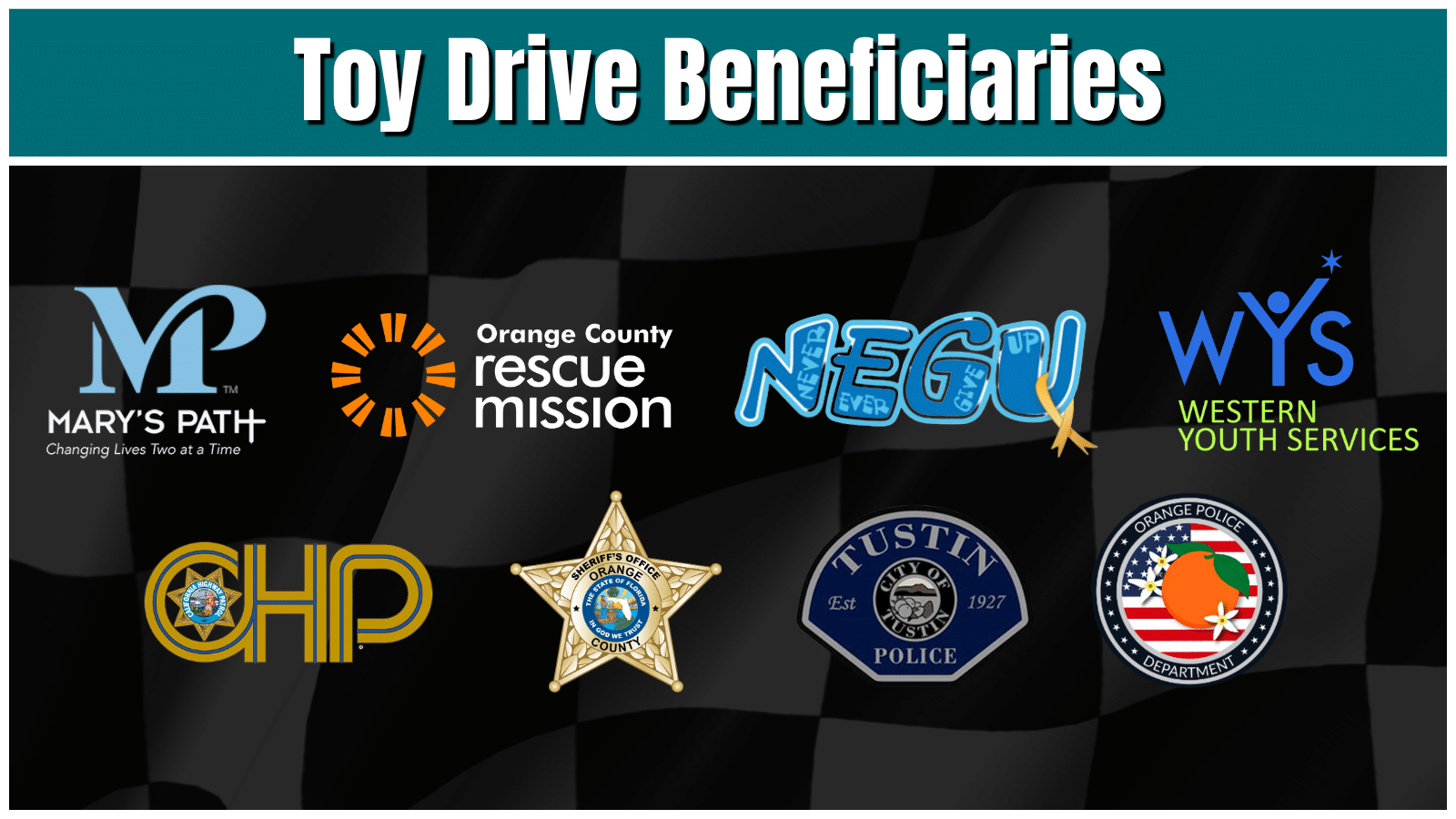 We extend our appreciation to all the incredible beneficiaries who serve as our direct connection to the children and families impacted by these toys and essential items during the holiday season. Thank you to Mary’s Path OC, OC Rescue Mission, Team NEGU, Western Youth Services OC, California Highway Patrol, OC Sheriff, Tustin Police, and Orange PD for their invaluable support. Thank you for helping us make a difference in our community and beyond!